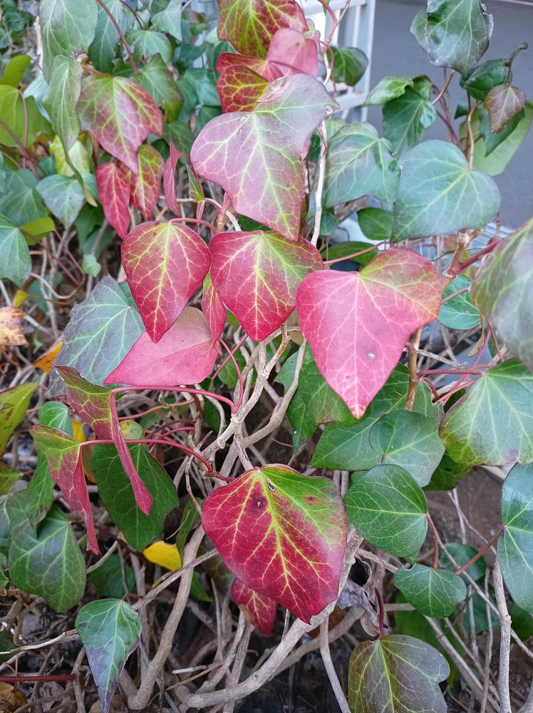 ここのキヅタはいつも赤くなりますが、赤くならないのも多いですね。