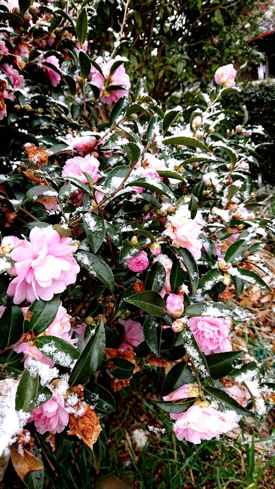 初雪景色,初雪景色,雪の山茶花の投稿画像