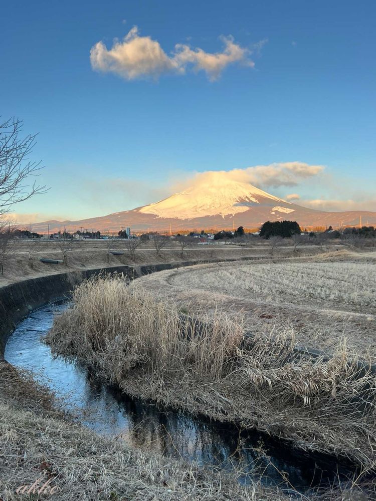 アッコちゃん何処も 氷🧊が張って 寒そうですね 富士山にも雲がかかって 空気はスッキリ 今日もありがとうございます🙇♀️😊🎶🎶🎶