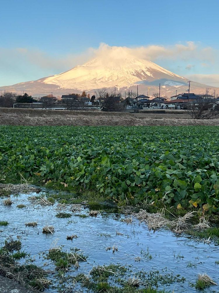 裾野まで紅富士,湧き水の川の中の田んぼ,鯨の様な雲の投稿画像
