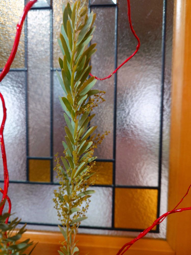 お正月花で使った、赤い柳をリメイクして、アレンジしました。