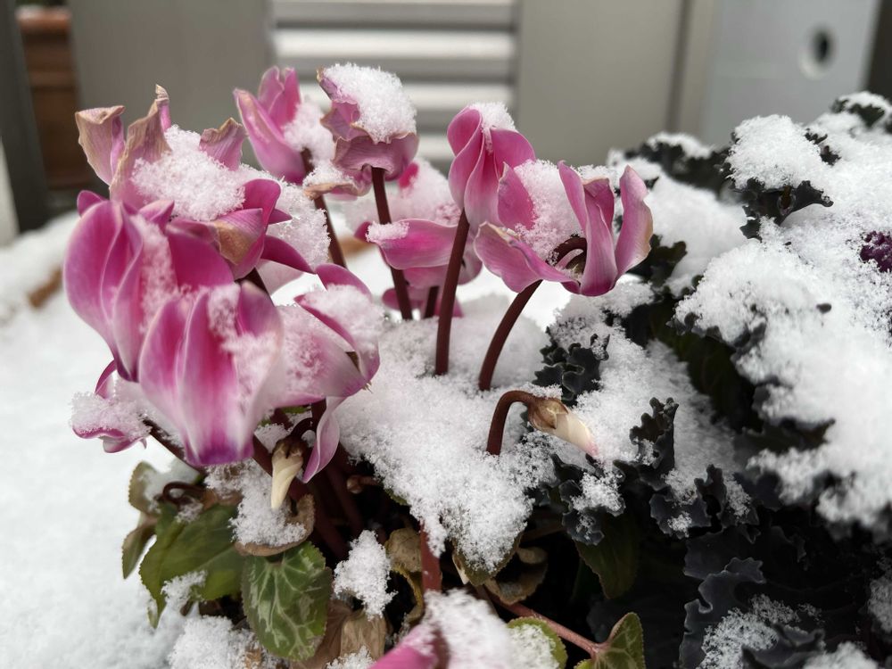 こんばんは🌃わーすごい雪⛄さすがガーデンシクラメン強いねー。