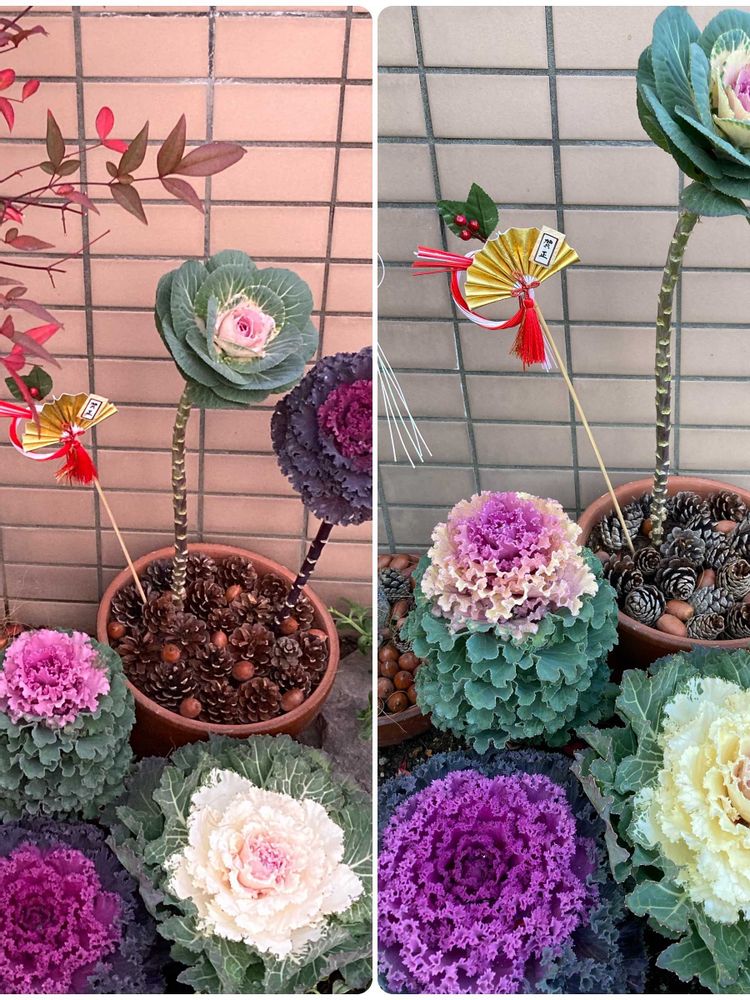 私、毎度の葉牡丹ですが、今年のこのコはオシャレな色のドレスに変身しました〜💕