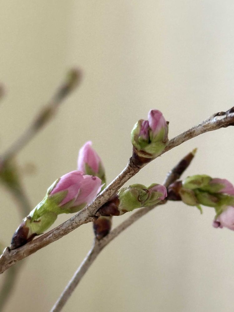 先日の生け花の桜と菜の花が咲き出しています🩷💛