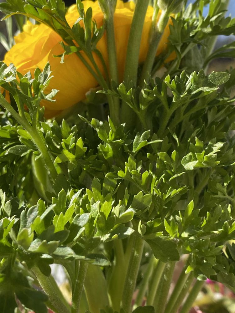 葉っぱメインのラナンキュラスとアルメリアピンクボール、本当に葉っぱねと思ったら、花があって、ホッとしましたよ。🩷💓🩷💓🩷