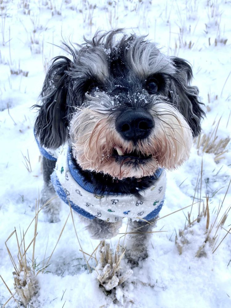 ルーク 田んぼドッグラン走り回って 体中雪玉だらけ❄️❄️