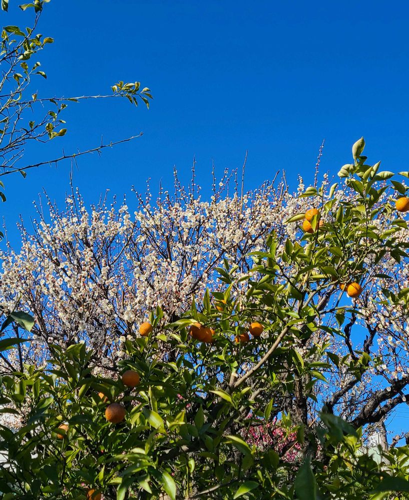 柔らかそうで美味しそうですこのままの状態なら菜の花の様な花が見られます😃 ③は白梅とキンカンの実 寒空に凛としてました💓✨️