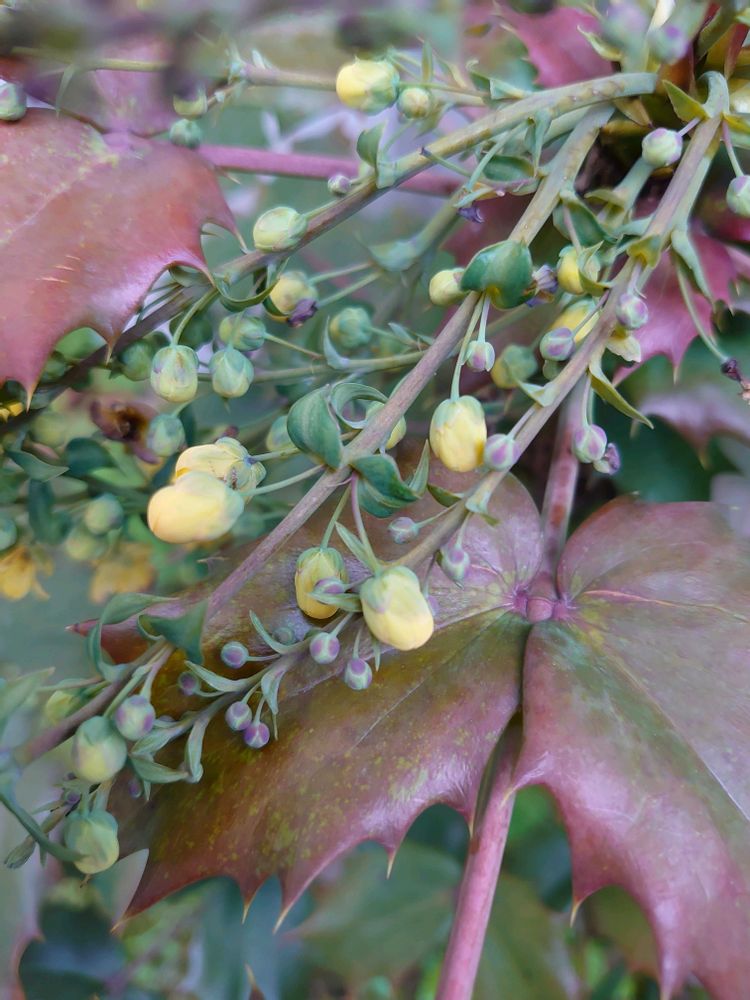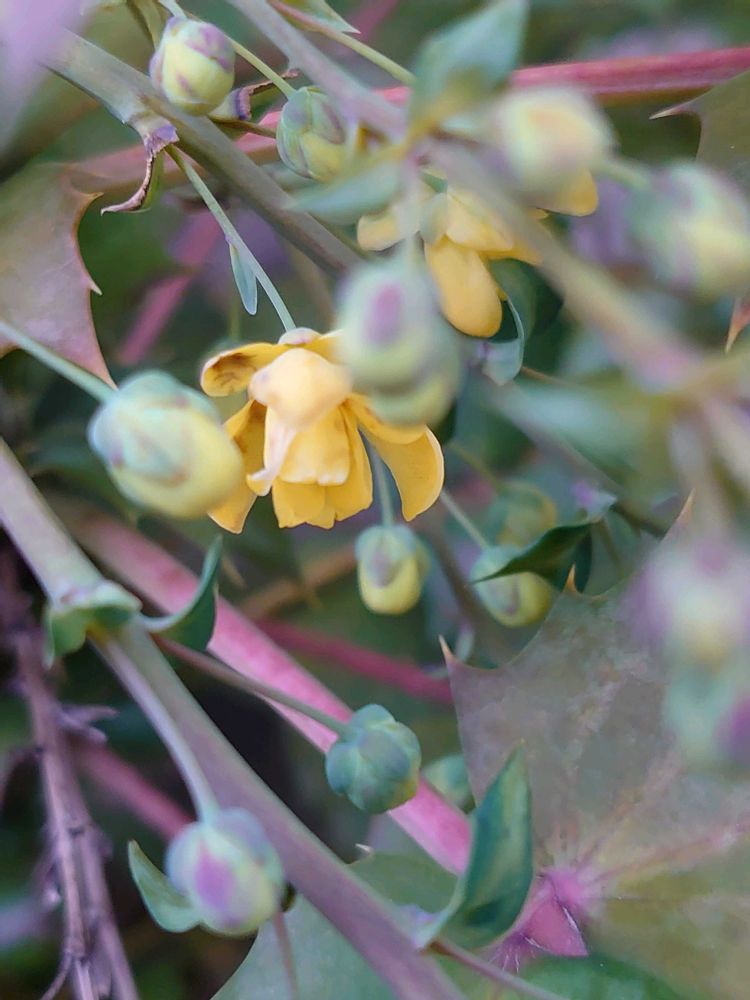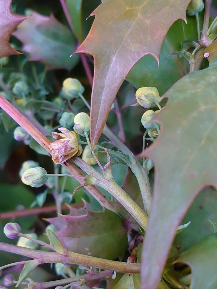 こんにちは😊 昨日見つけたヒイラギナンテン💛お花がほころび始めてました〜😃💕