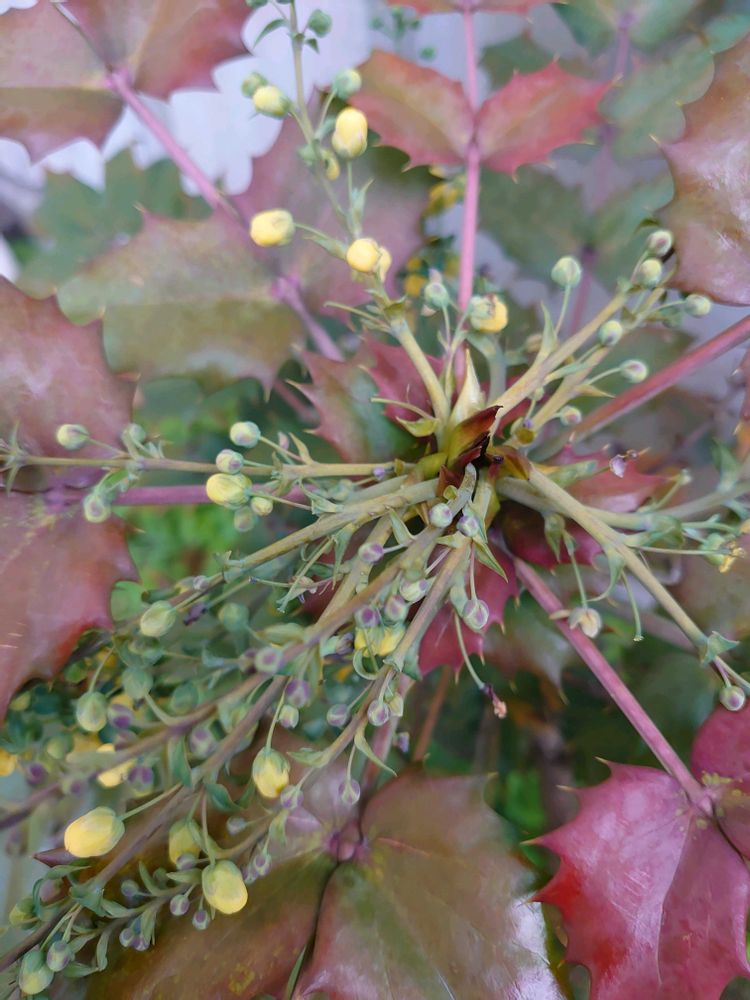 ヒイラギナンテン放射線状に広がっています!他所のマンションの植え込みで咲き始めていました〜💛😊