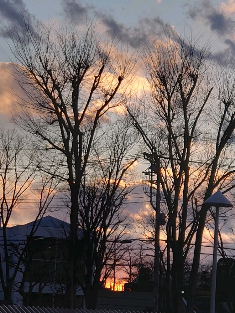 夕焼け🌇の木々たちのシルエットと夕焼け雲が重なってまるでお花みたいですね💕︎