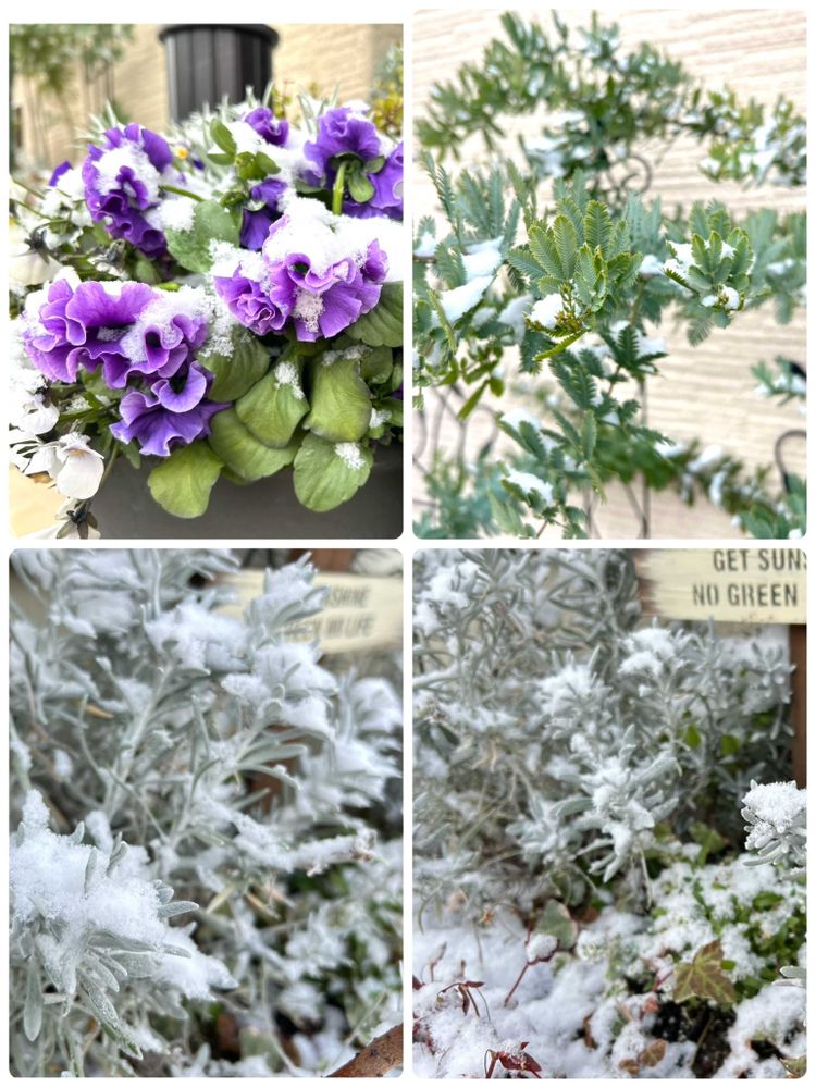 玄関の🚪パンジーさん達も雪を被ってしまいましたね
