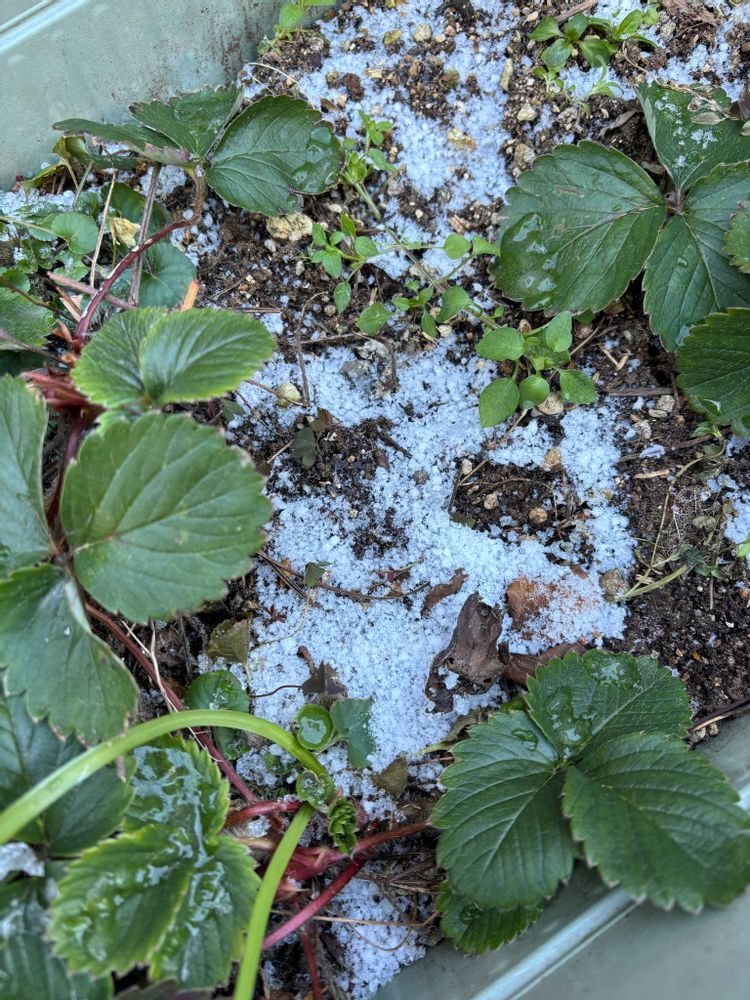 朝起きた時はもう少し雪が見えましたが、今もホコリみたいな雪が舞ってるだけです