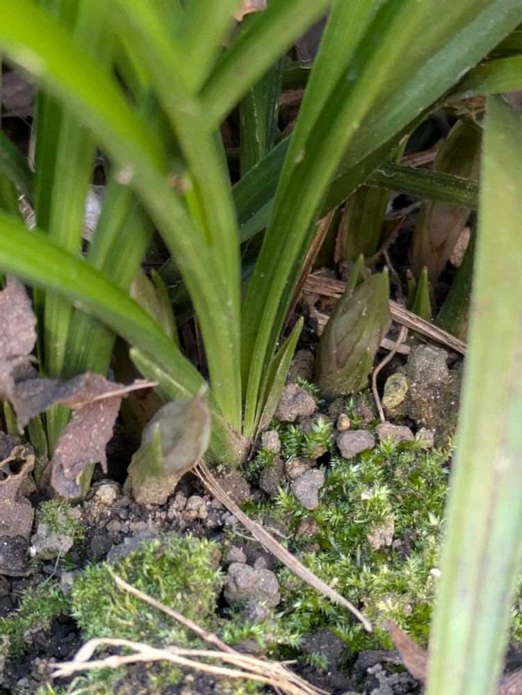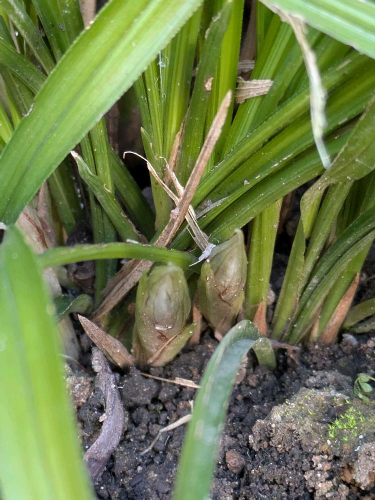 庭の春蘭、二株とも蕾が着いてる。