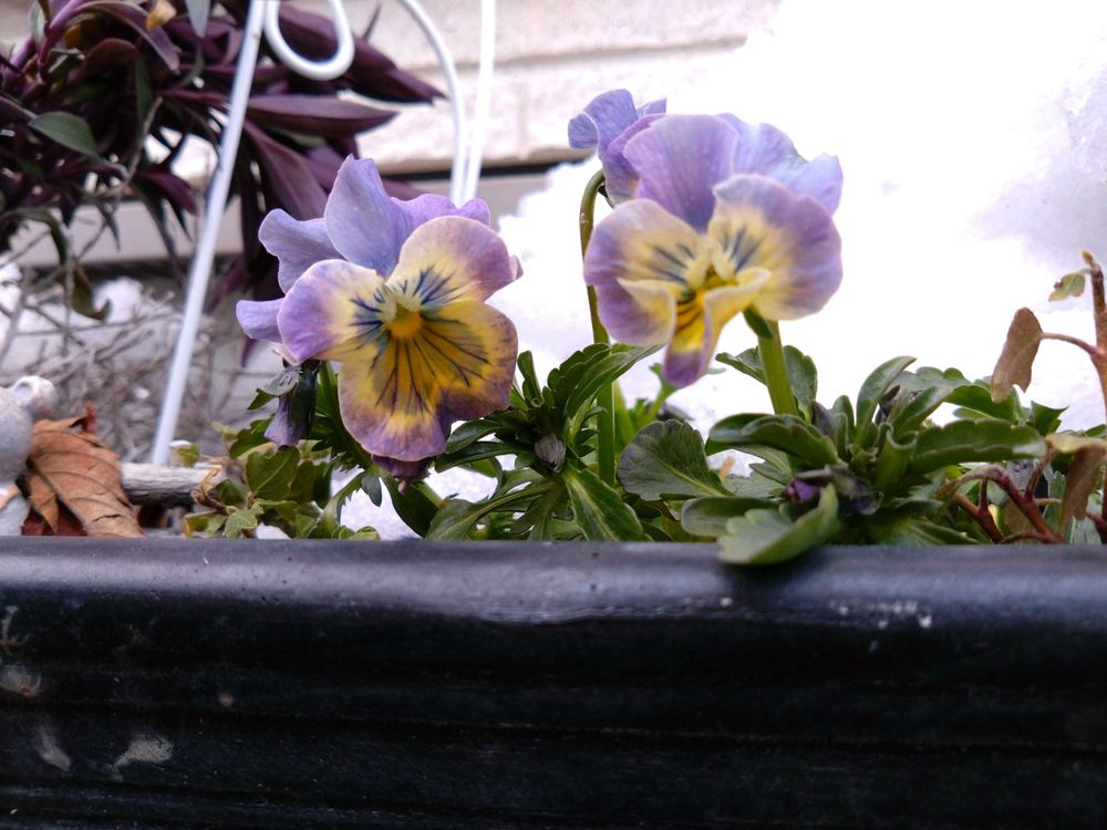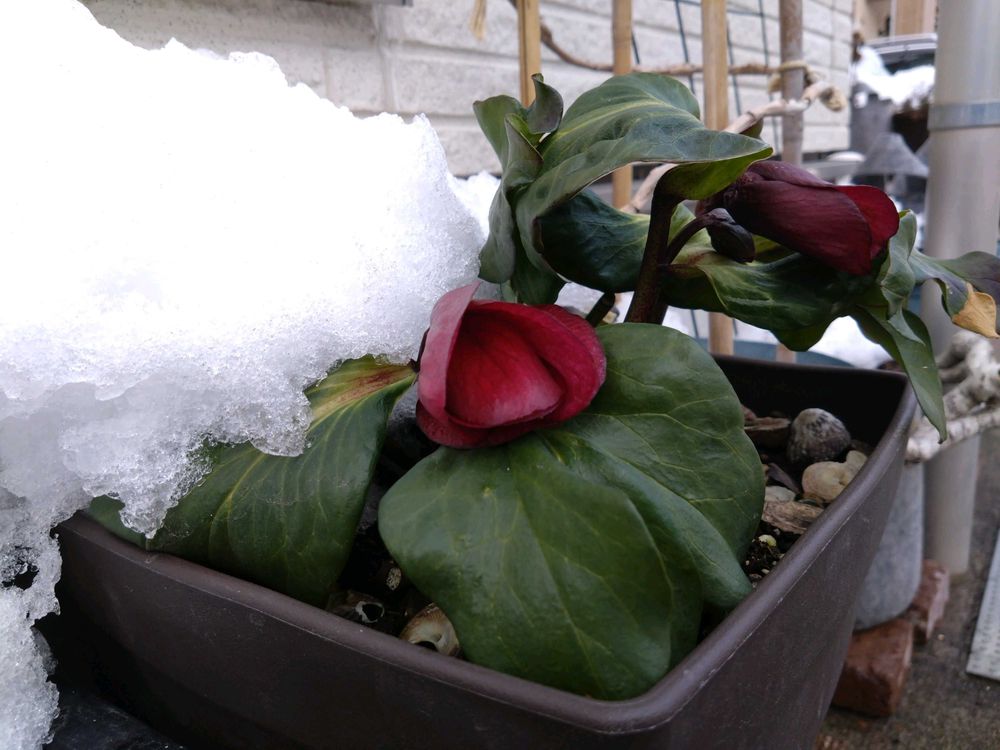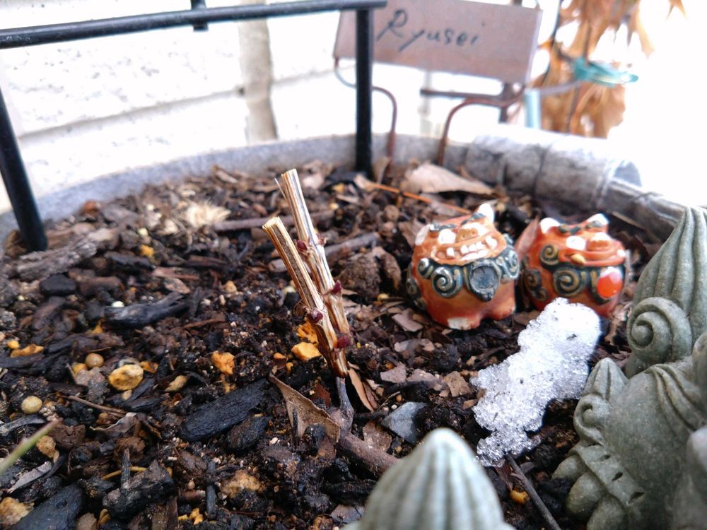 久しぶりのおひさまに、軒下チームがおそるおそるのぞいてきちゃいました🫣花壇はさすがに☃️です。