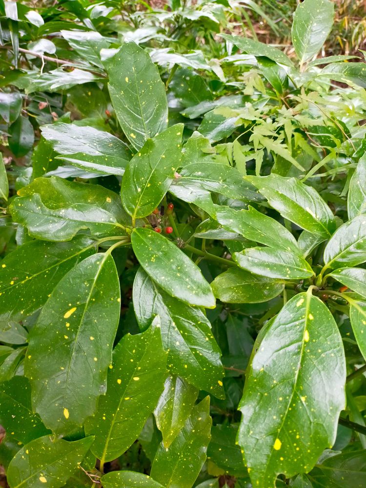 2️⃣アオキ…この辺の公園では珍しく、赤い実がありましたよ🔴