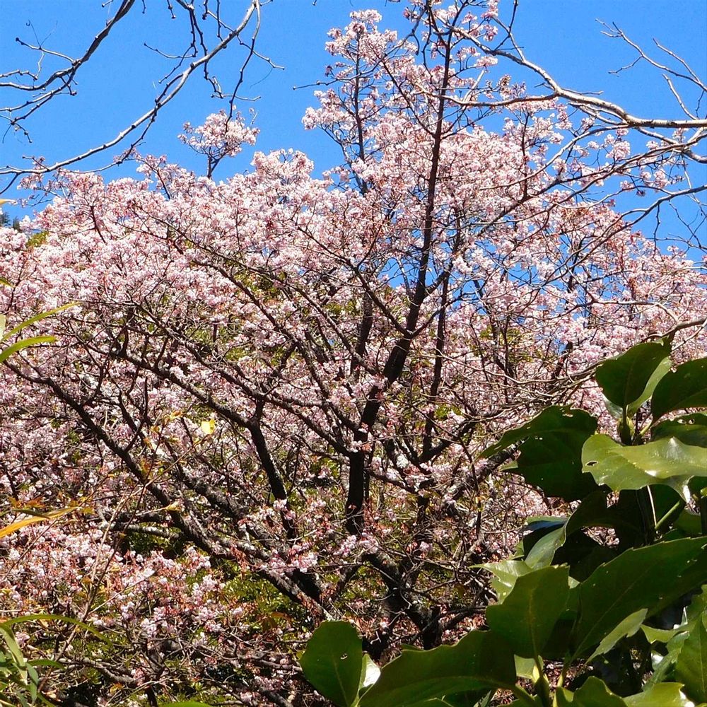 カンヒザクラ(寒緋桜)とヤマザクラ(山桜)、またはオオシマザクラ(大島桜)の雑種であると考えられています🌸🌸