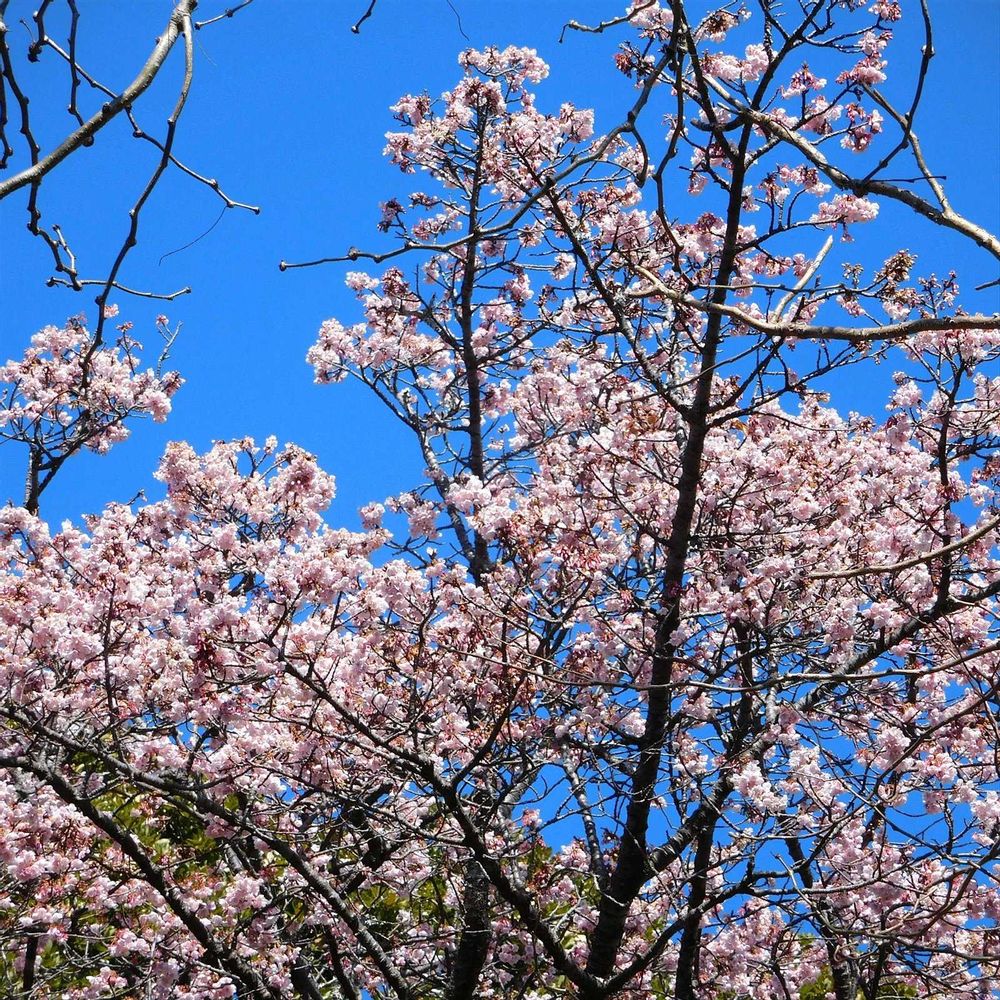 早咲きの桜🌸で、2月頃、葉の出る前に淡紅色の5弁花が咲きます🎶