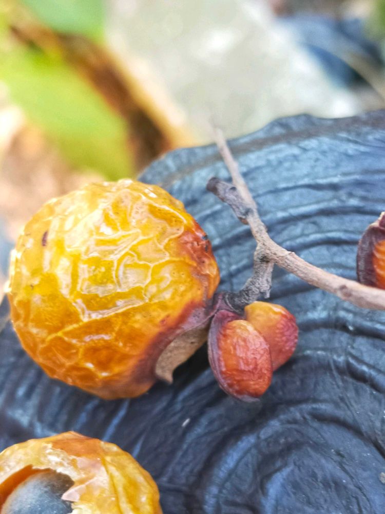 誰かが剥いていった実の中には黒い実が覗いています⚫️