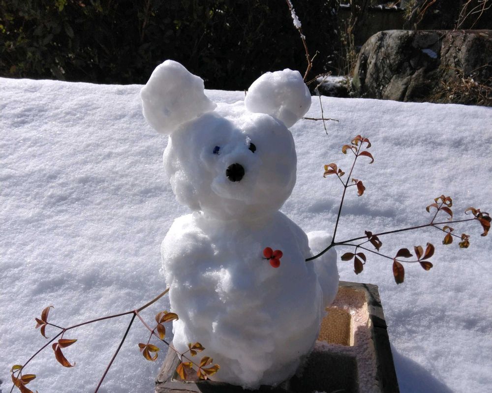 目鼻を付けるのに平面では落ちるから、雪に付けてから雪だるまに付けたの(* 'ᵕ' )☆