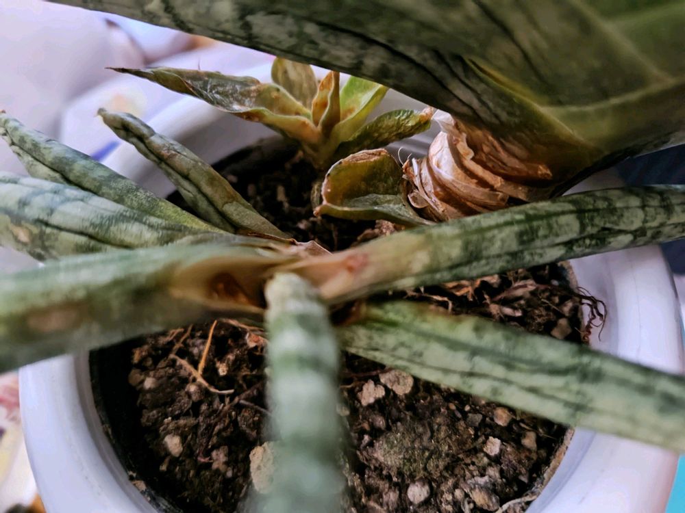 昨年は葉挿しが上手く行ったので、上手く行った葉挿しっ子がいる所に、ダメ元で切って上にポイっしておきました