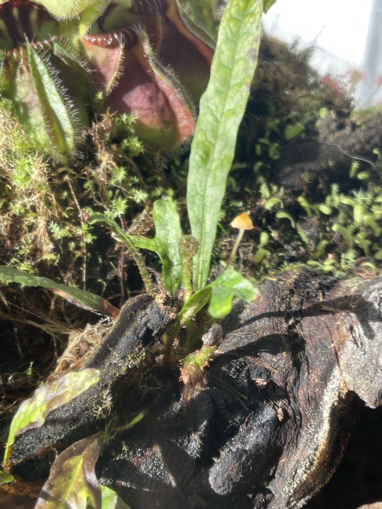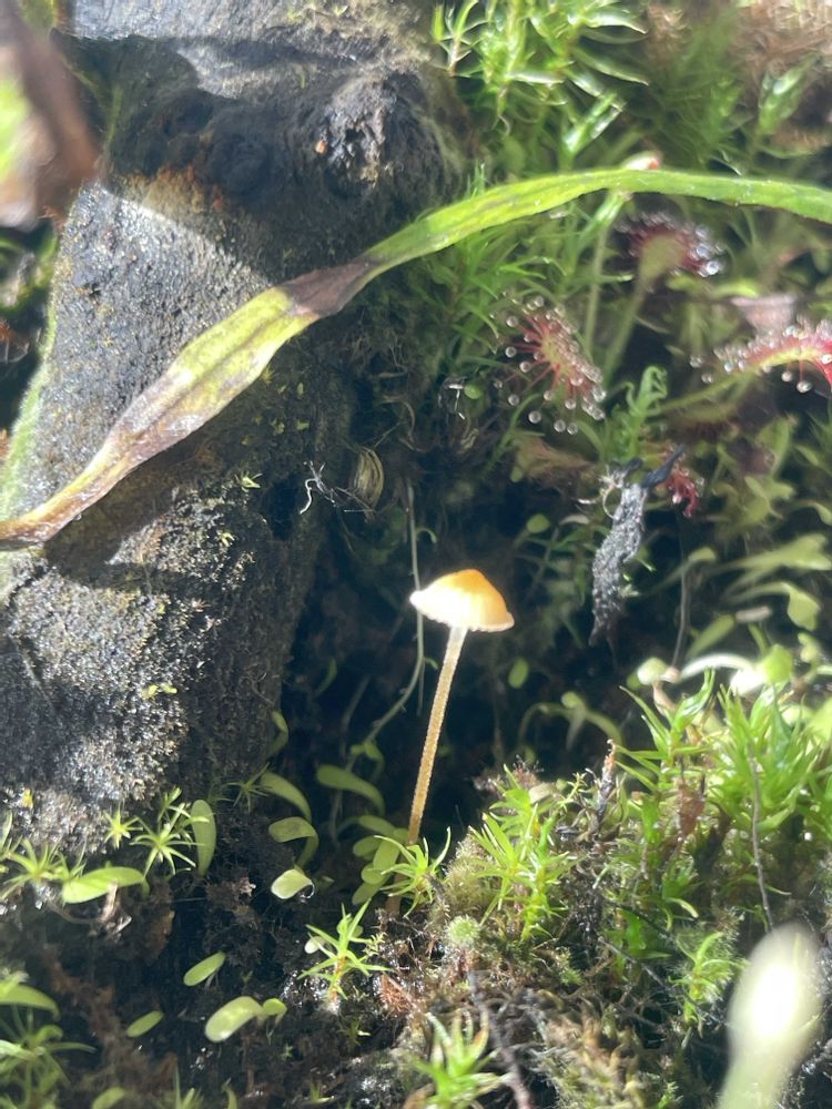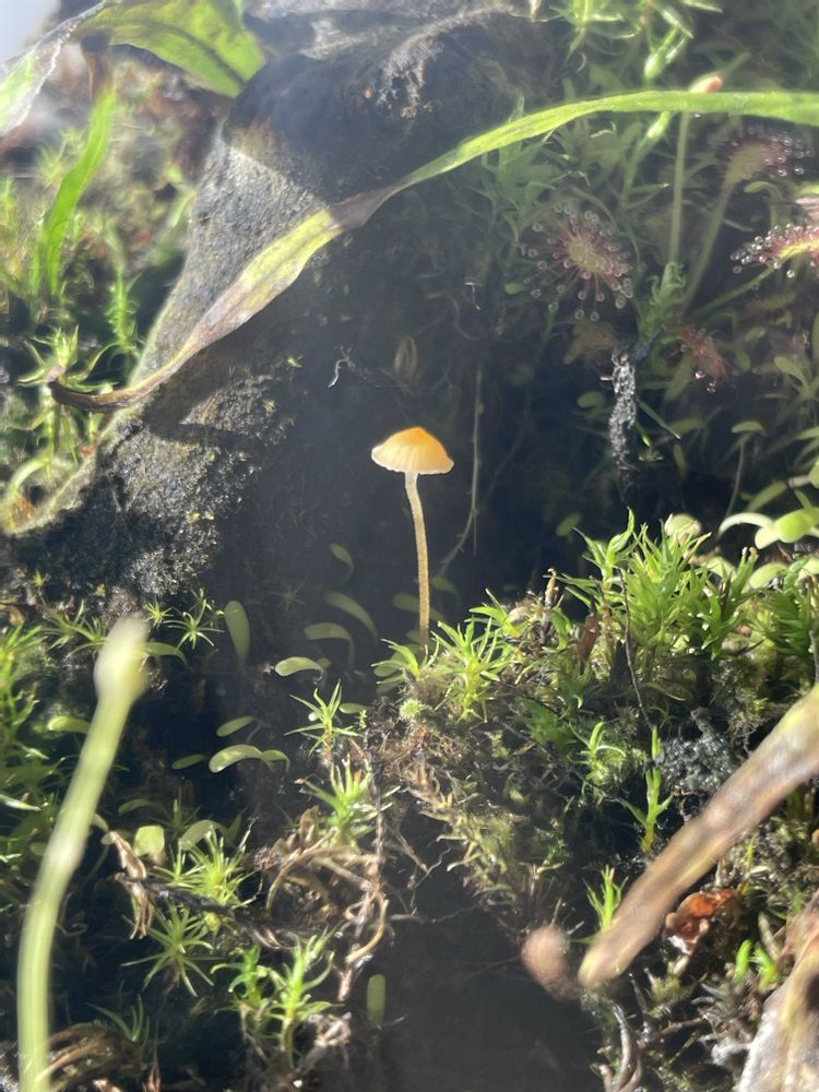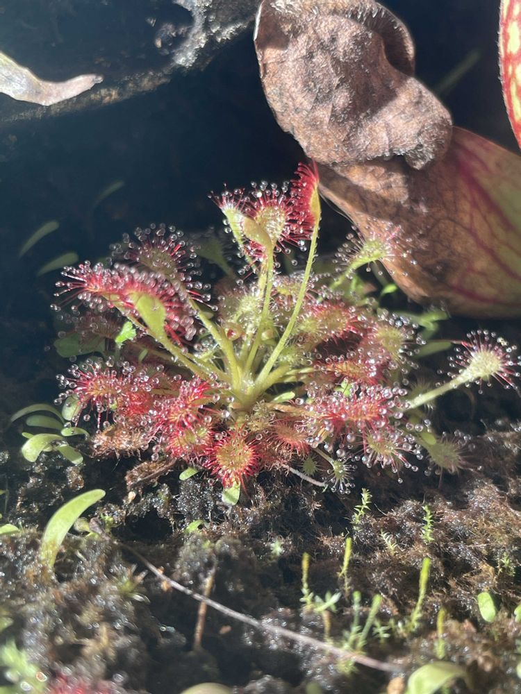 品種はよくわからない、ヘリアンフォラの鉢に紛れていたのが大繁殖している。最近春を前にいろいろ動き始めたみたいで、食虫テラリウムの中がなんだか賑やか。