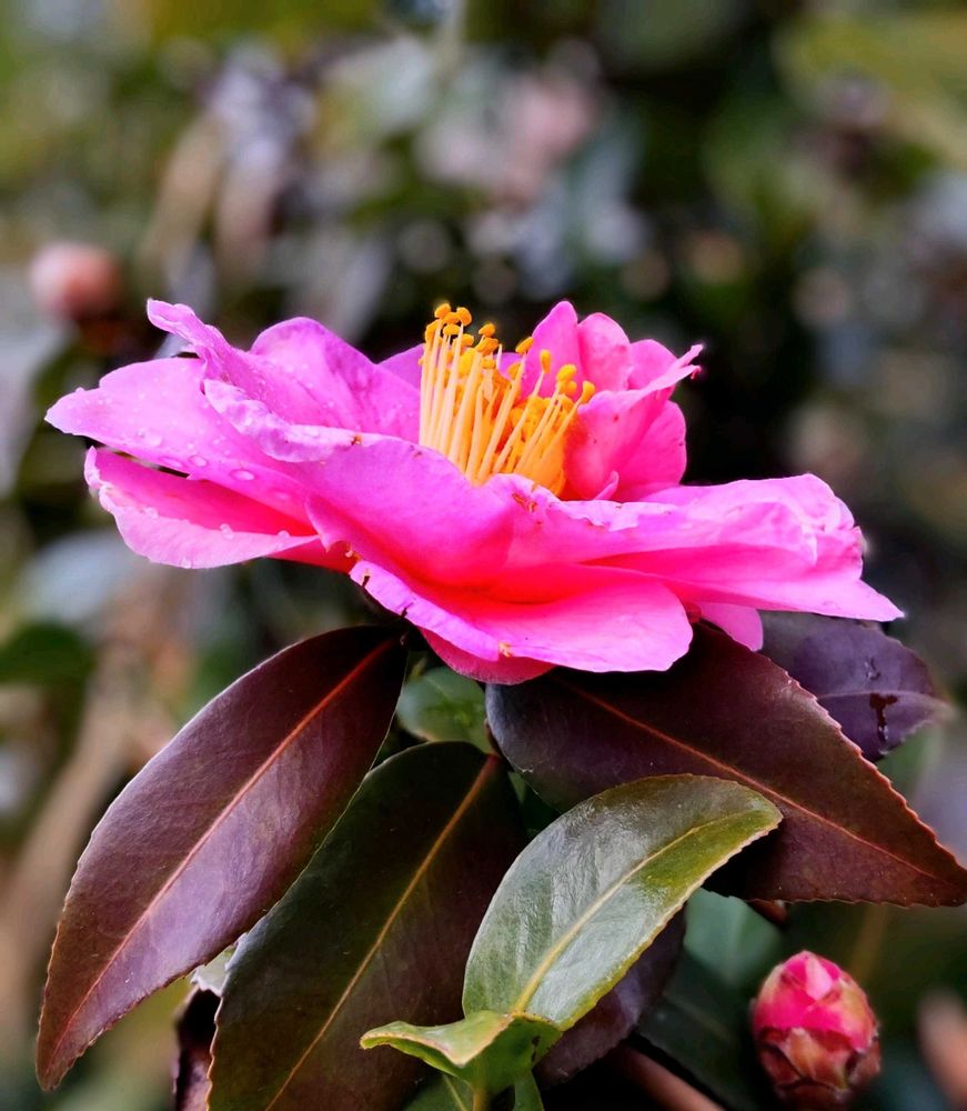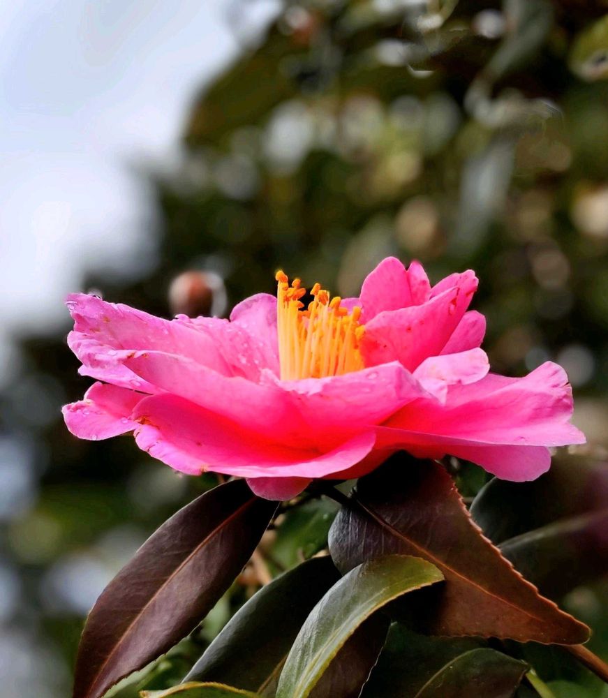 近所の廃屋の庭にサザンカみたいな椿が咲いています。