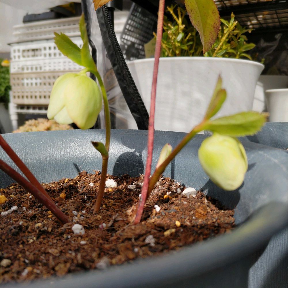 この小さなクリスマスローズは何色が咲くのか咲くまでお楽しみです🤭