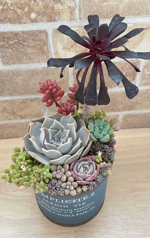 黒法師を使った寄せ植えをやってみたくて作ってみたんですが、思ってたイメージとは全然違う感じになりました🌴