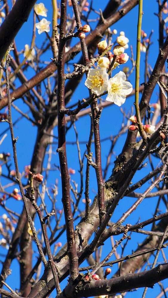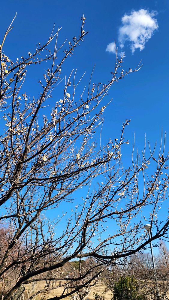 白梅は、紅梅に遅れてまだ蕾が多い。