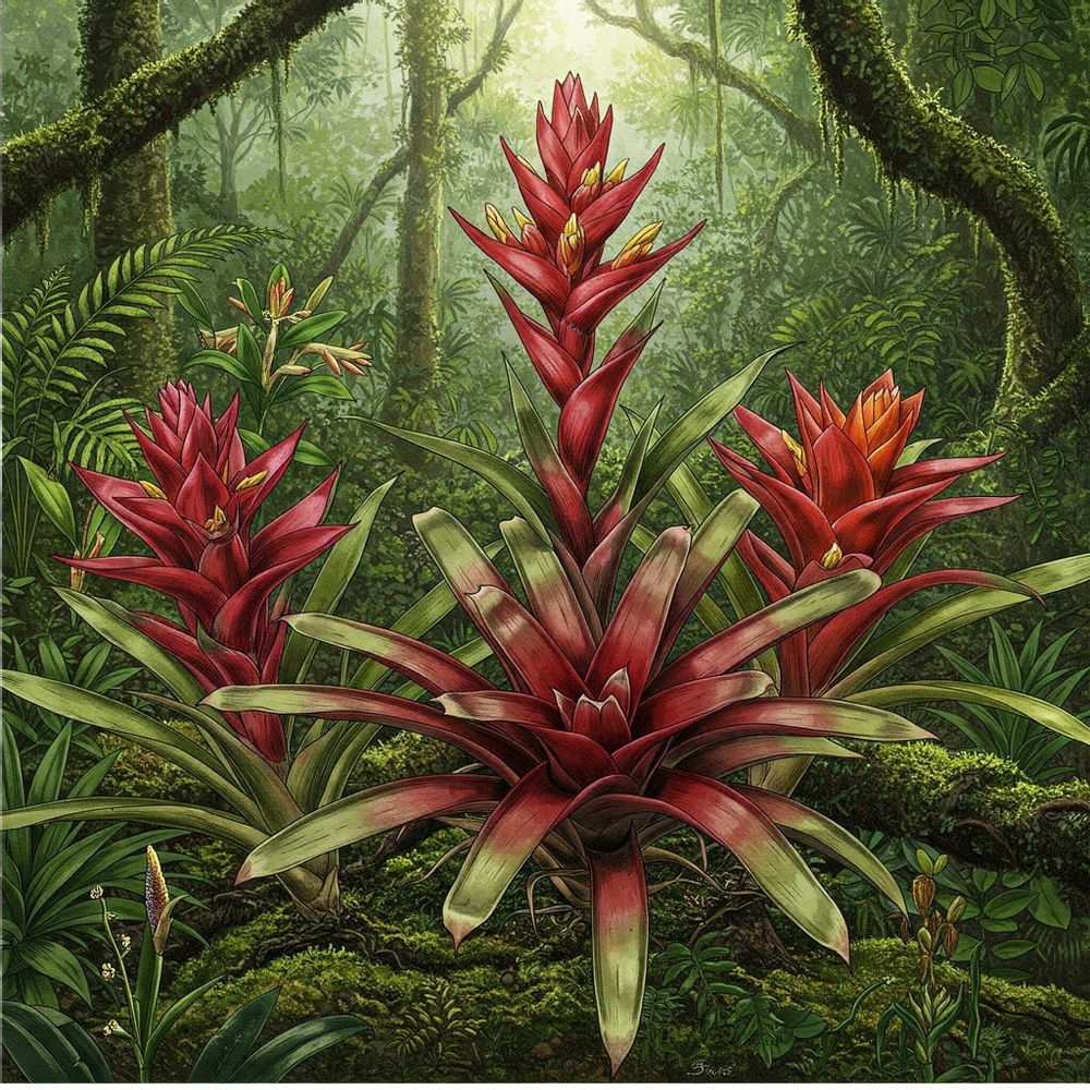 ドラゴンフルーツは何故かハシラサボテンの実になってるし、グズマニアのちょっとリアルな1枚ではなんかエクメアっぽい印象。