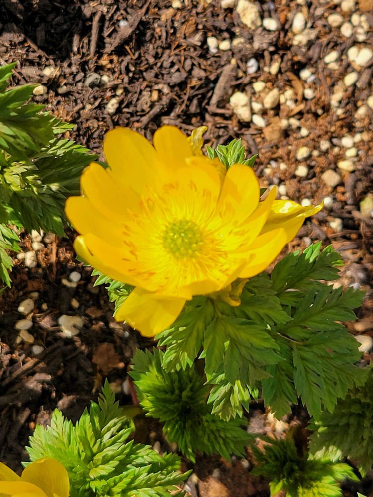 こちらのフクジュソウは、葉っぱの緑色も綺麗✨