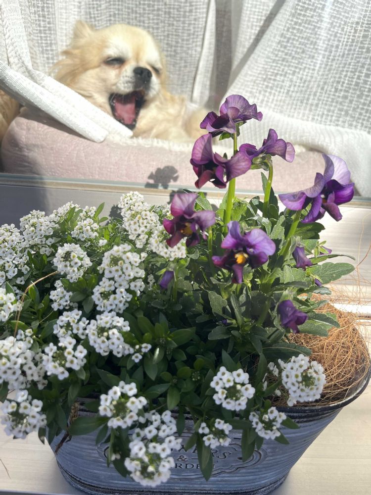 この首の長い立ち姿は素敵💓アリッサムもモリモリ🥰