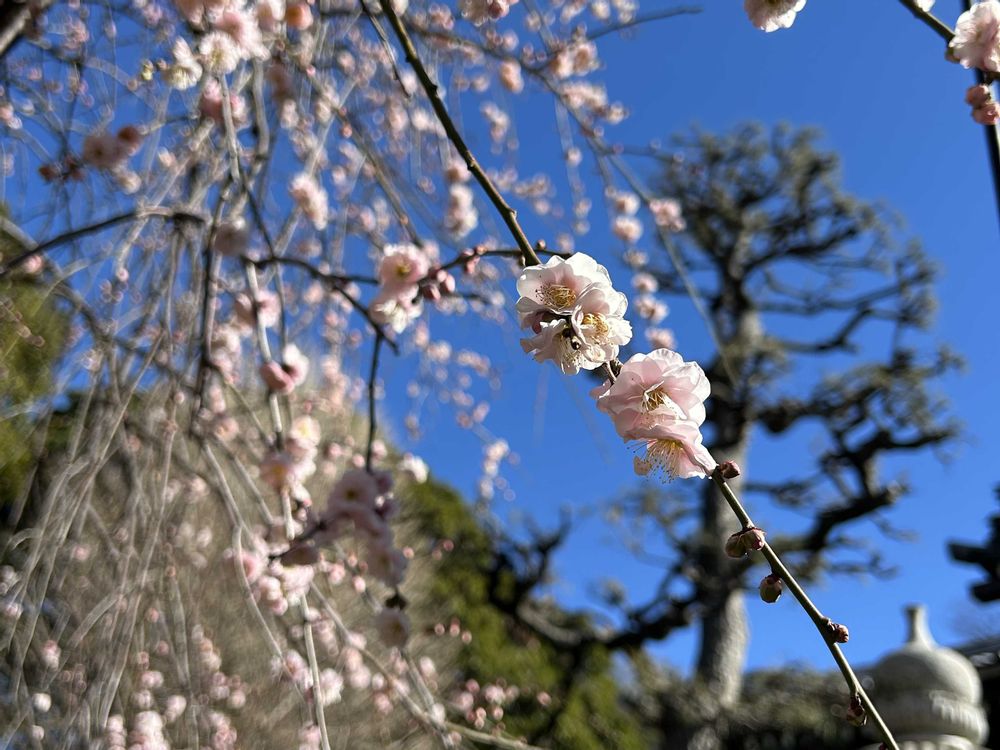 藤沢に息子が住んでいますが、このお寺は訪れたことがありません。枝垂れ梅もいろいろな種類がありますね。寒空の下、梅の花を愛でる……そんな時間が幸せなひと時ですね💗大切にしたいですね