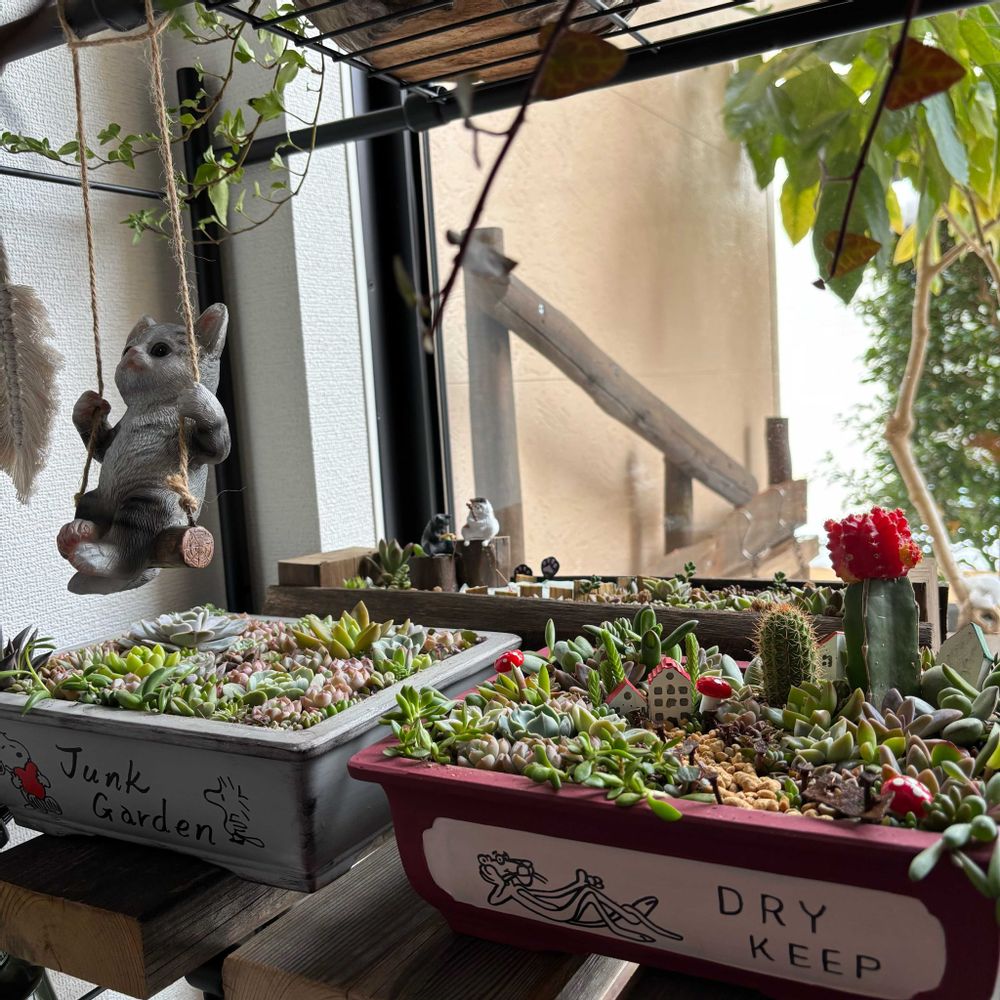 リメ盆栽鉢で箱庭つくってみました🏡🌵💕