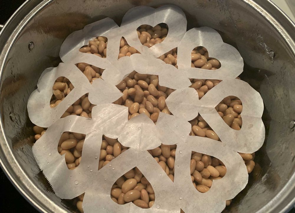 snsで見かけた折り紙カットを参考にクッキングペーパーで作りました