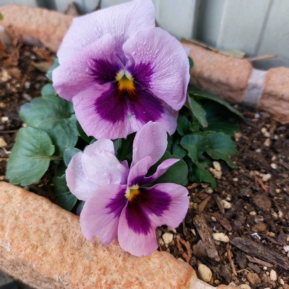 花が中々、上がらない中、二輪のパンジーが咲いています。