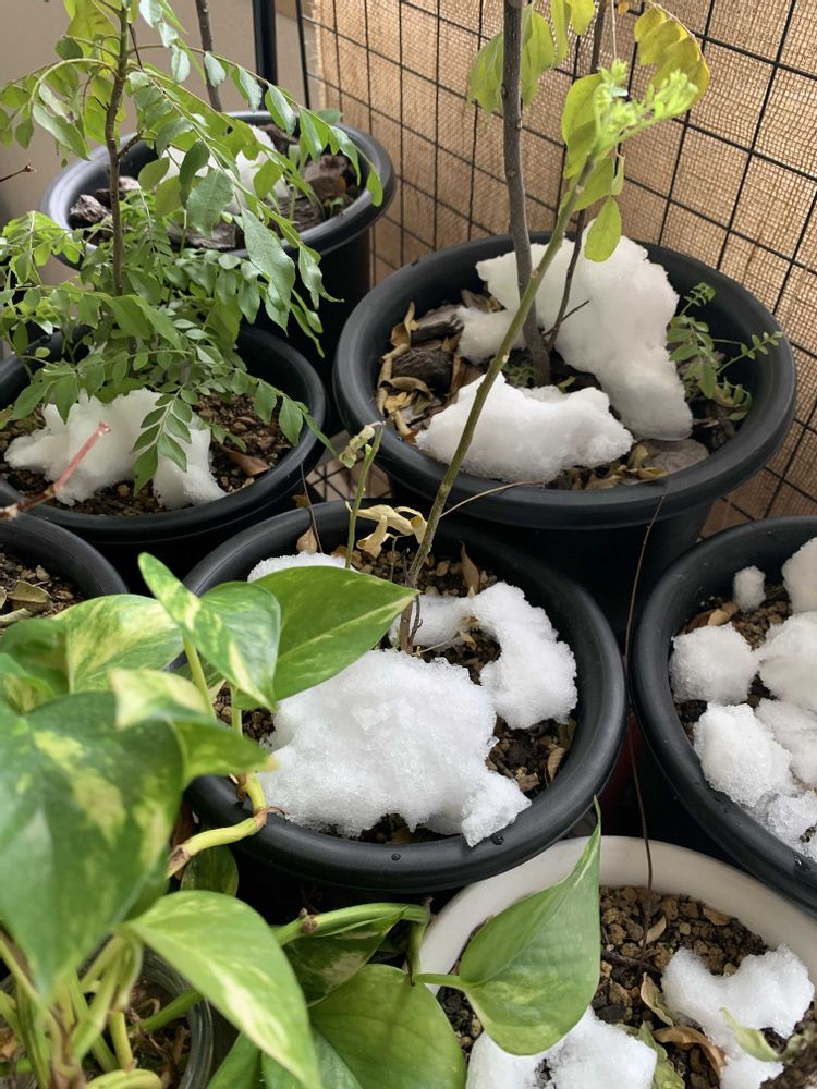 天然の水やり❄️何日も降り続ける雪、青空が見えたと思ったらまたすぐに雪雲が流れてきて真っ白です🌨️