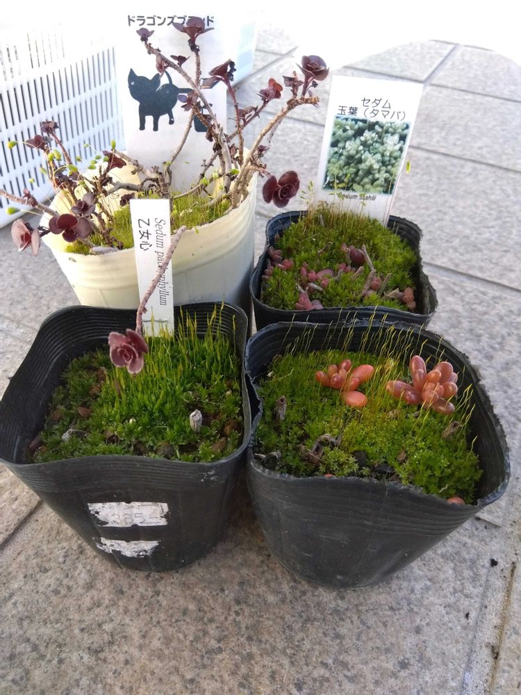 今日は日差しが温かいので多肉事を セダムの苗に苔がびっしり どなたかの投稿で苔に栄養を取られると見たので、苔の除去をしました 結構分厚い苔が収穫できました🤣