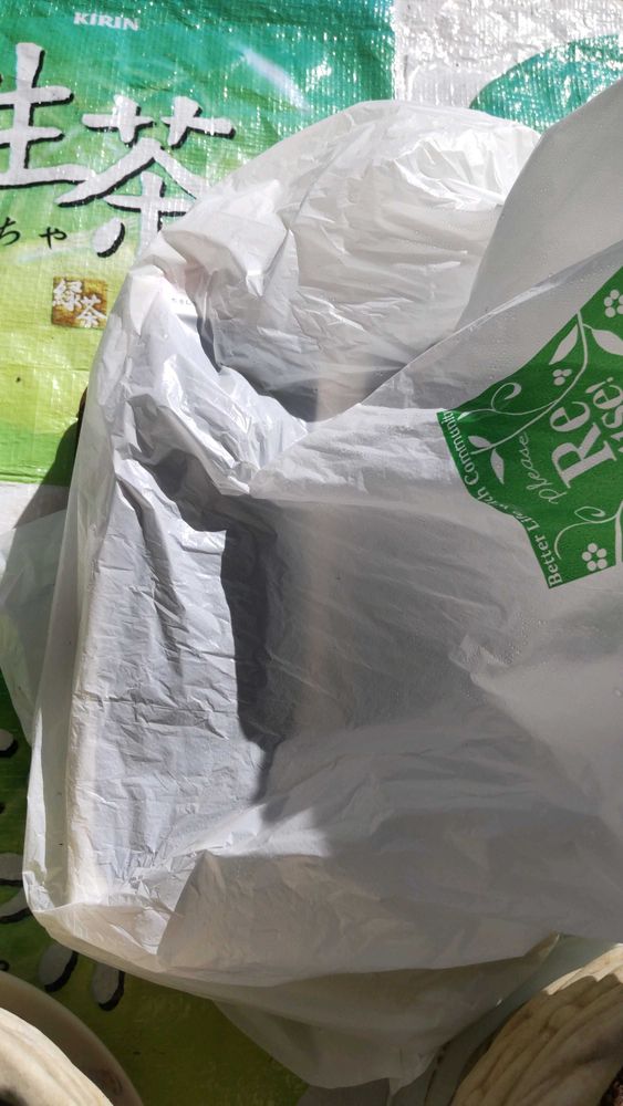 陽当たりの良い縁側にゴミ袋を掛けただけ