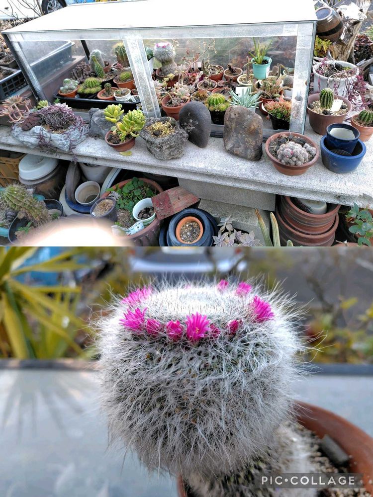マミラリア このサボテンは初めての花です 温室の中に入っているので咲いてくれたのでしょう😊 今日が 黒帽子の日?🙄 クロネコヤマト なら知っているけど😚