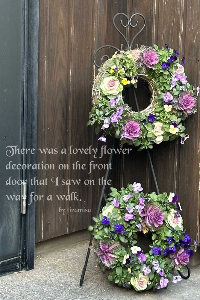 tiramisuさんの葉牡丹のリース,お出かけ先♡,よそのお宅の玄関前の投稿画像