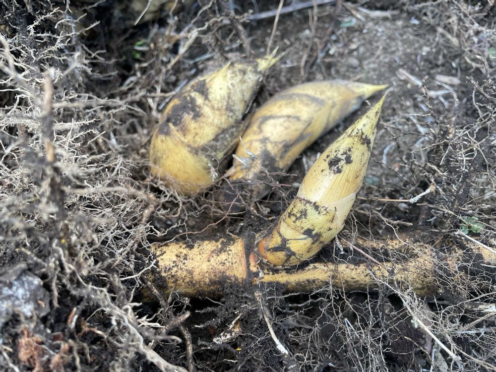 竹林の隅を開拓中にタケノコ発見!まだまだ小さいですね😆今年の雨不足で収穫は例年より減るかもです😆