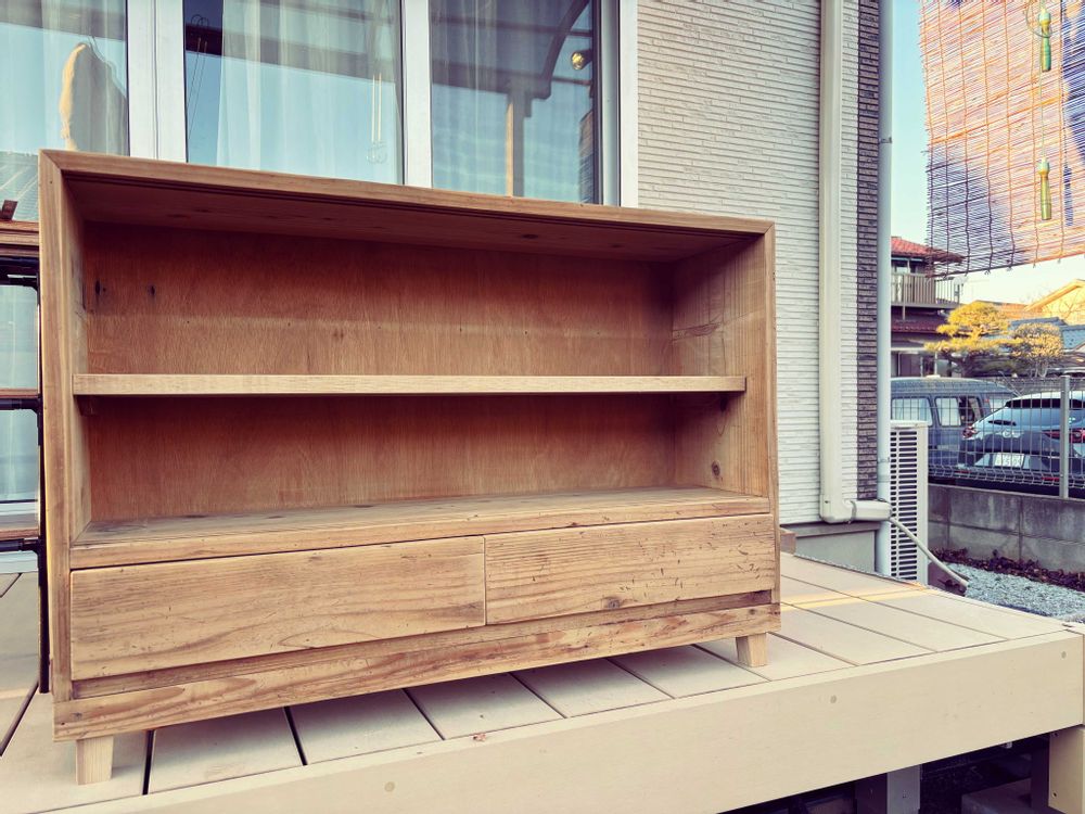 足を付けて、とってもオシャレな棚が出来ましたね!