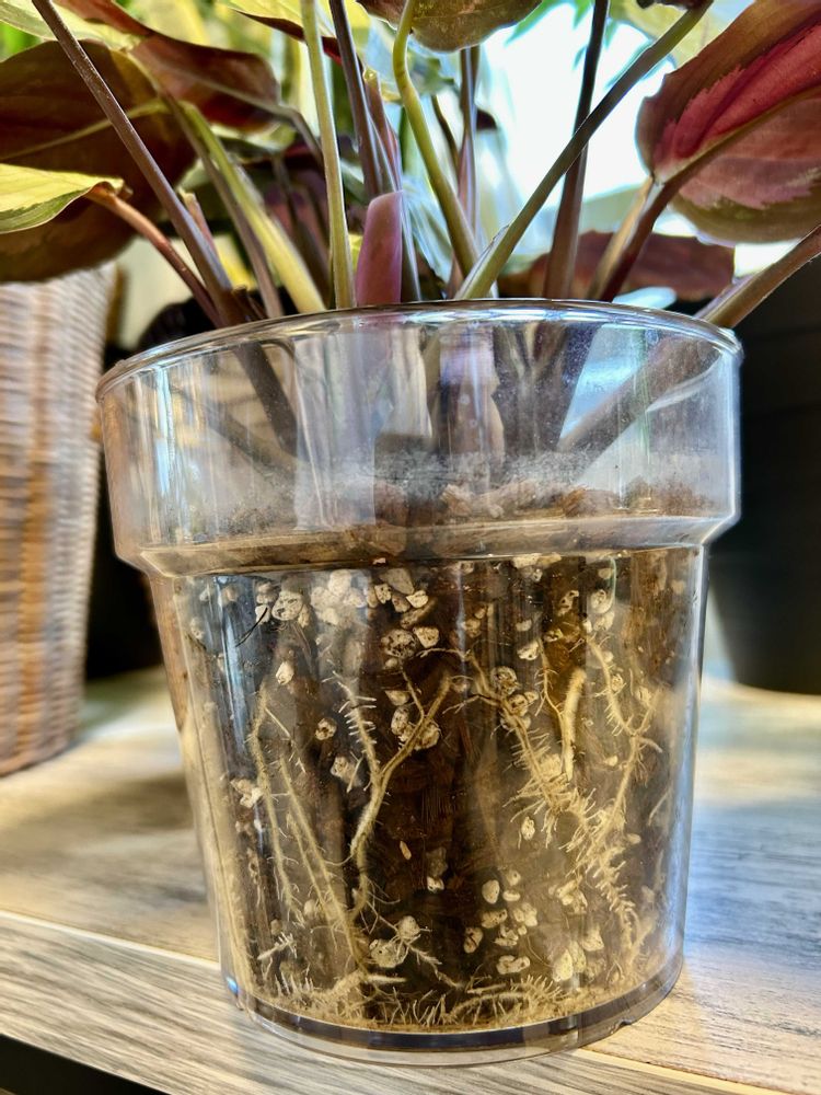 カラテア😊ノーザンライト😊水やりした😊新芽も出てるし根っこも回って来たので今年も春鉢上げかな😊
