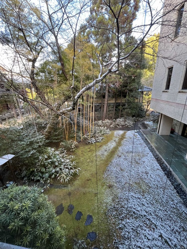 雪に打たれるように咲いていた楽美術館の小彼岸桜
