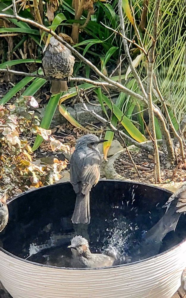 楽しそうに順々に水浴びして、また水がだいぶ減ったので、足しときました😂