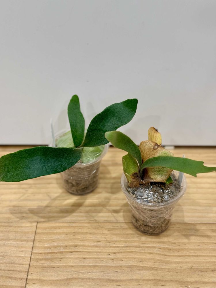2. タイから来た胞子蒔き🌿 左 P. Veitchii wild x P.w. Dwarf tatsuta、右 P. Yellow moon x ss fong 1000円均一のお店😂