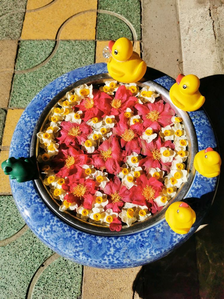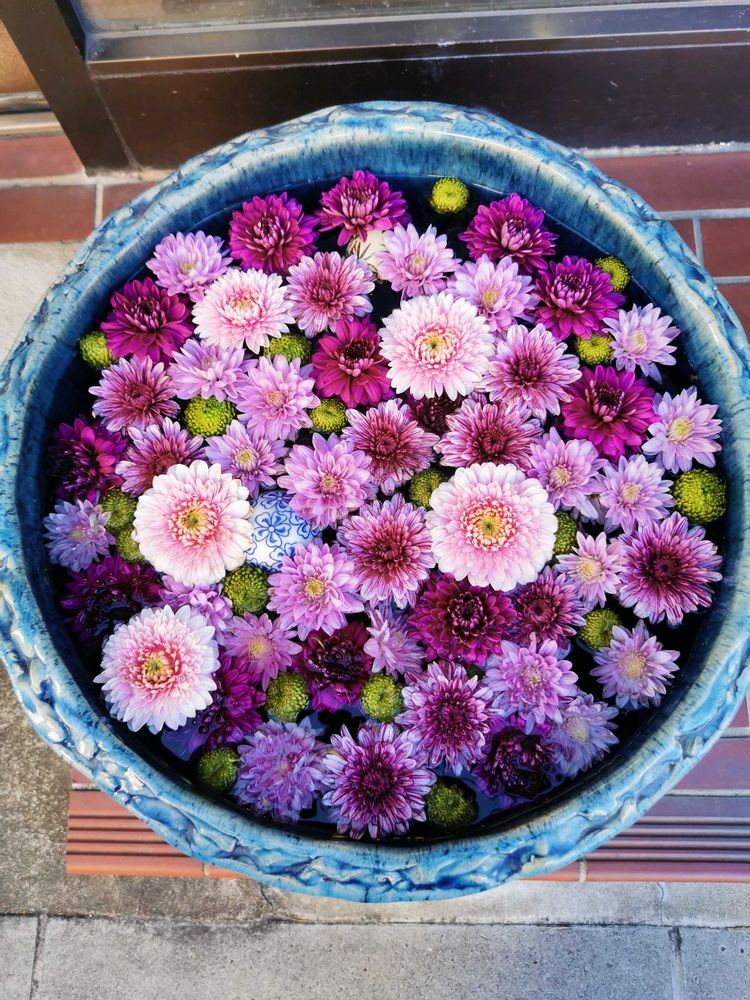 この前の投稿にも、たくさん、花手水のせました。✨🌸💐