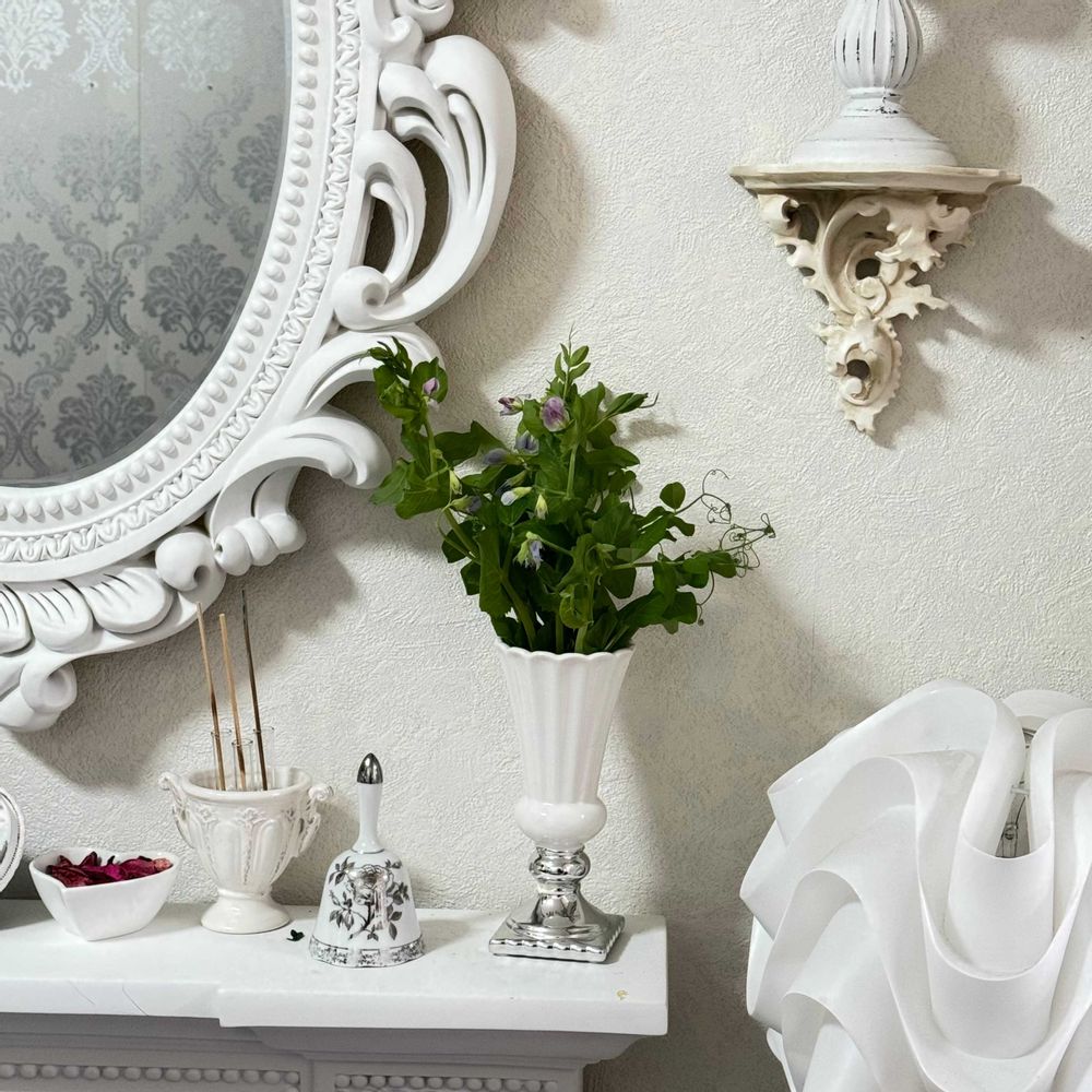 インテリア仏壇「鏡壇ミラリエ」「鏡壇ミロワ」に今日(2/10)の誕生花の「エンドウ(豌豆)」 を飾ってみました。