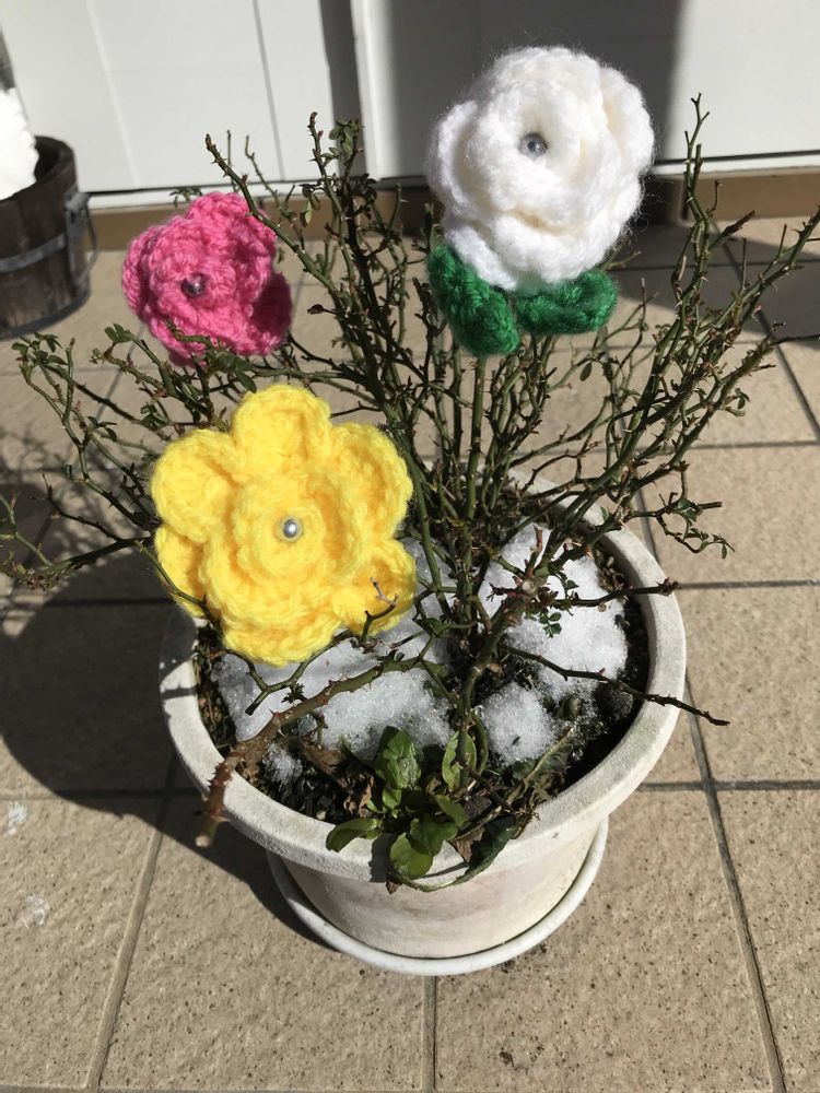 ニットの花セルルナさんが編んだんですね🌸🌸🌸